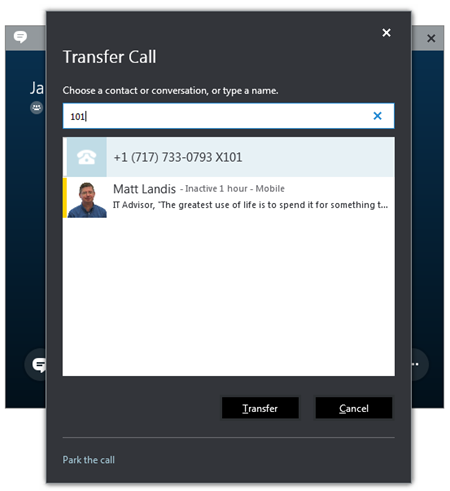 Call Transfer will be no less than 4 clicks - If a call is from PSTN and has no contact in Outlook it can be one click!